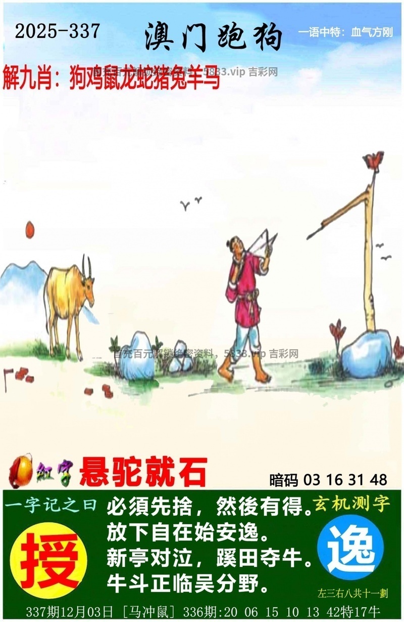 | 336期:九肖【鼠鸡狗蛇羊猴猪牛马】开:牛17准 |